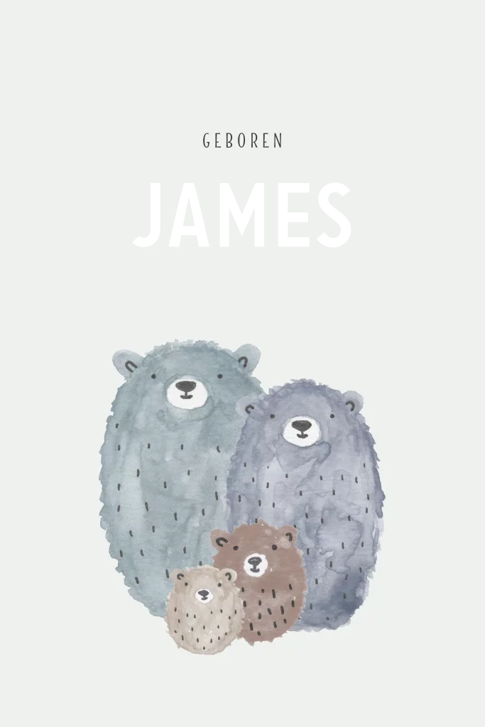 Lief geboortekaartje met geschilderde berenfamilie