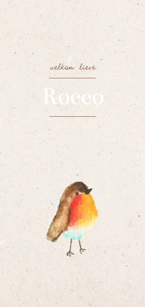Lief geboortekaartje met een geschilderd vogeltje, een roodborstje.