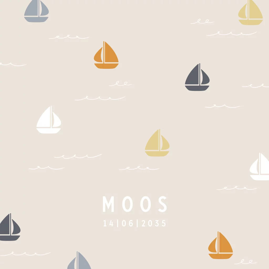 Lief geboortekaartje met zeilbootjes in zachte kleuren.