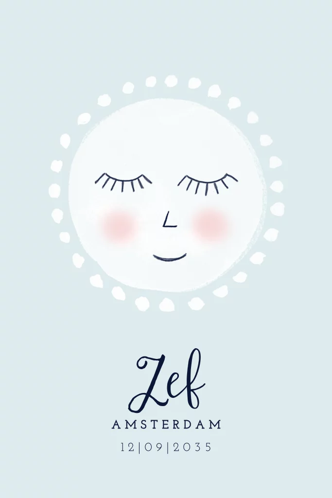 Lief geboortekaartje voor een jongen met een geschilderde zon.