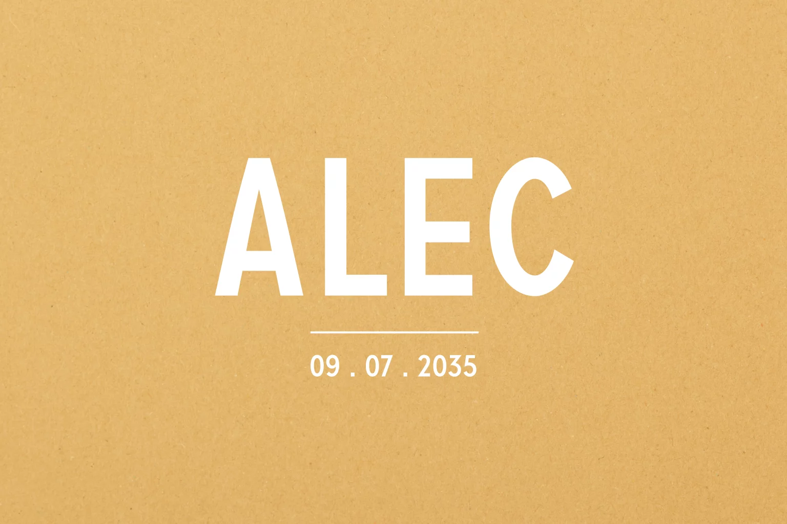 Stoer okergeel typografisch geboortekaartje.