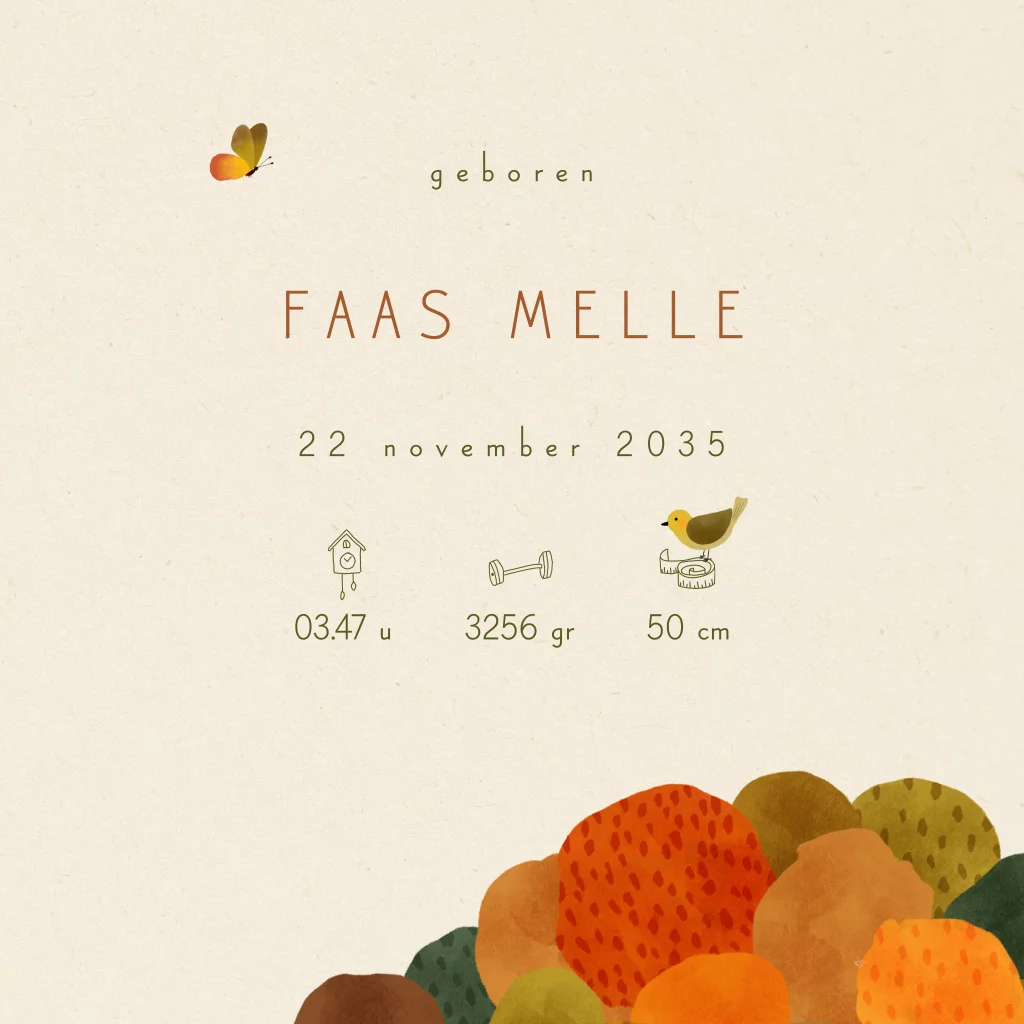 Vierkant herfst geboortekaartje met een herfstlandschap