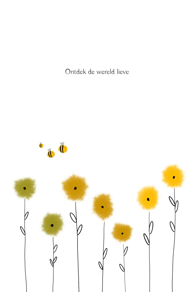 Vrolijk geboortekaartje met bloemen en bijtjes