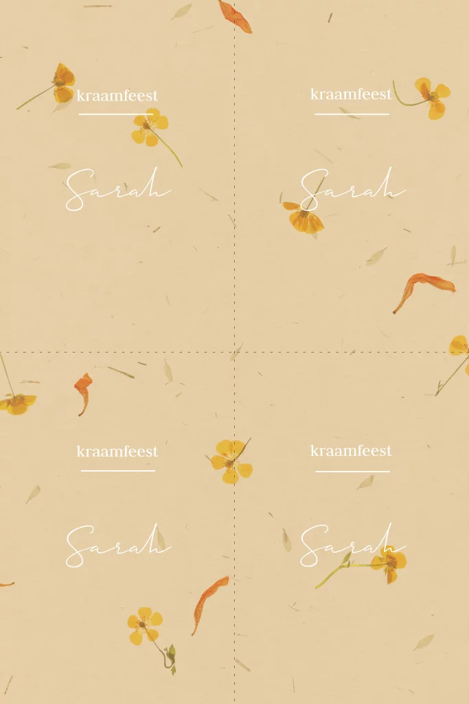 DIY kraamfeest kaartje met droogbloemen-look achtergrond.
