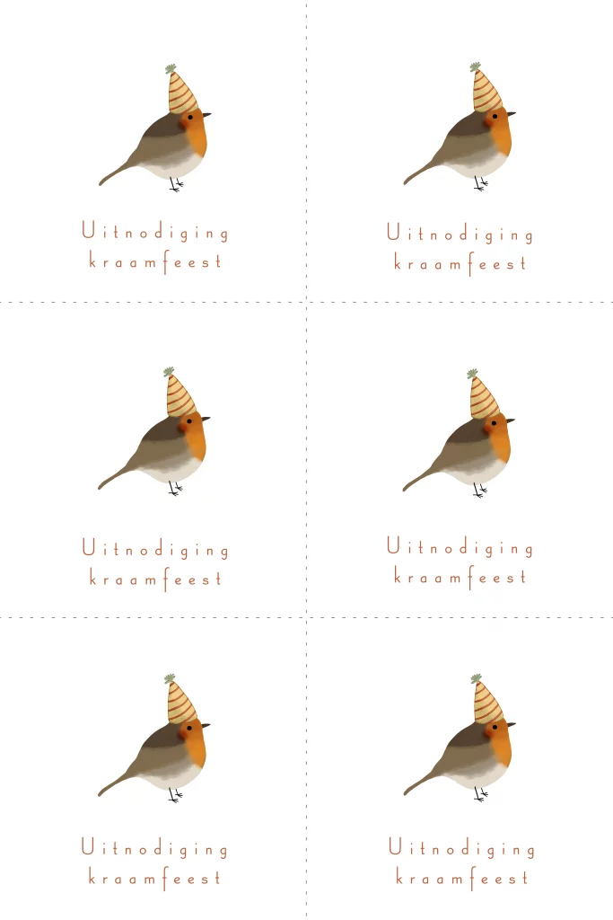 DIY kraamfeest kaartjes met een roodborstje met een feesthoedje op.