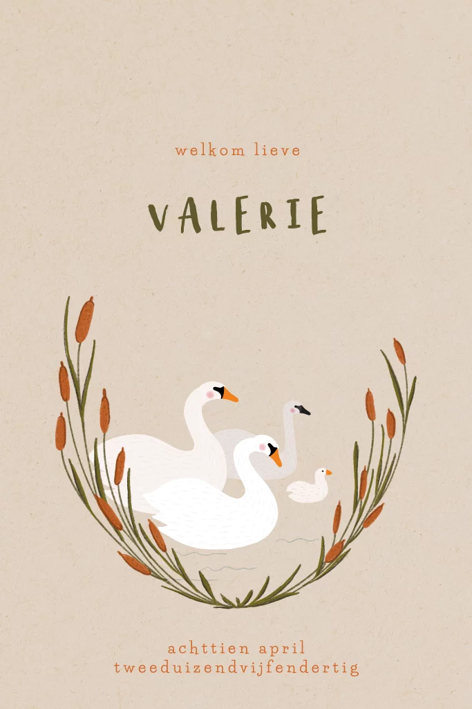 Geboortekaartje met een zwanen familie
