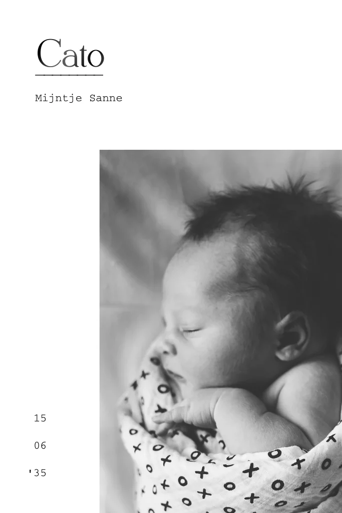 Lief geboortekaartje met een foto op de voorkant van het kaartje