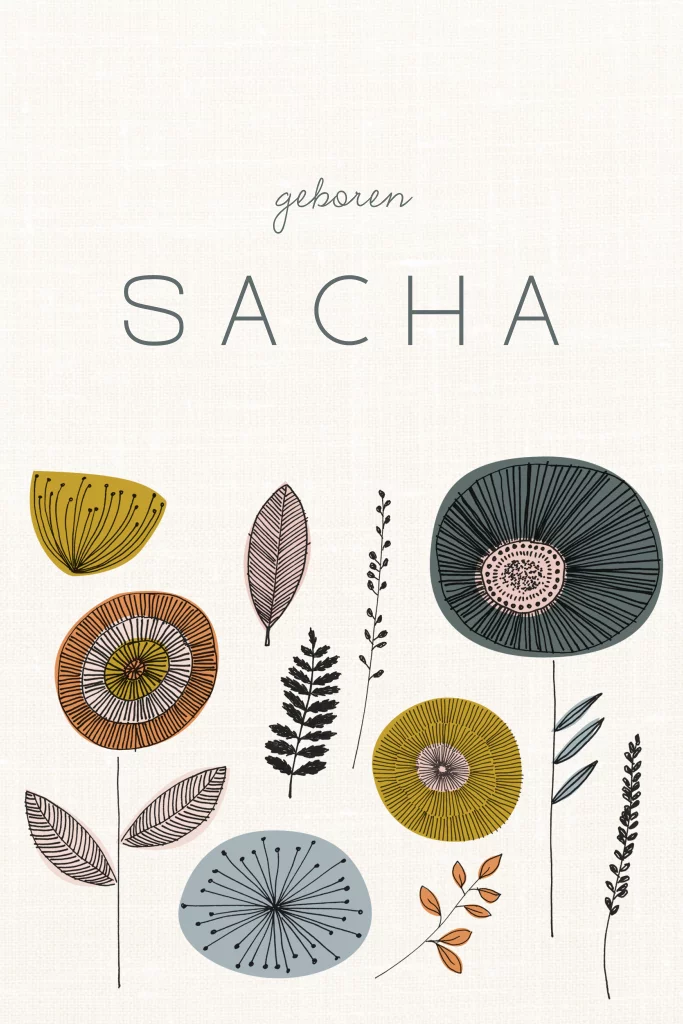 Lief geboortekaartje met retro bloemen. De bloemen zijn met de hand getekend. Dit kaartje heeft ronde hoeken.