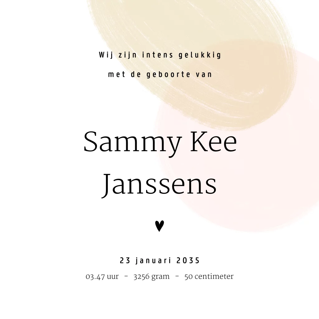 Pas het kaartje aan in de editor (tekst, lettertypes, kleuren) en maak er hét geboortekaartje van voor jullie kindje!