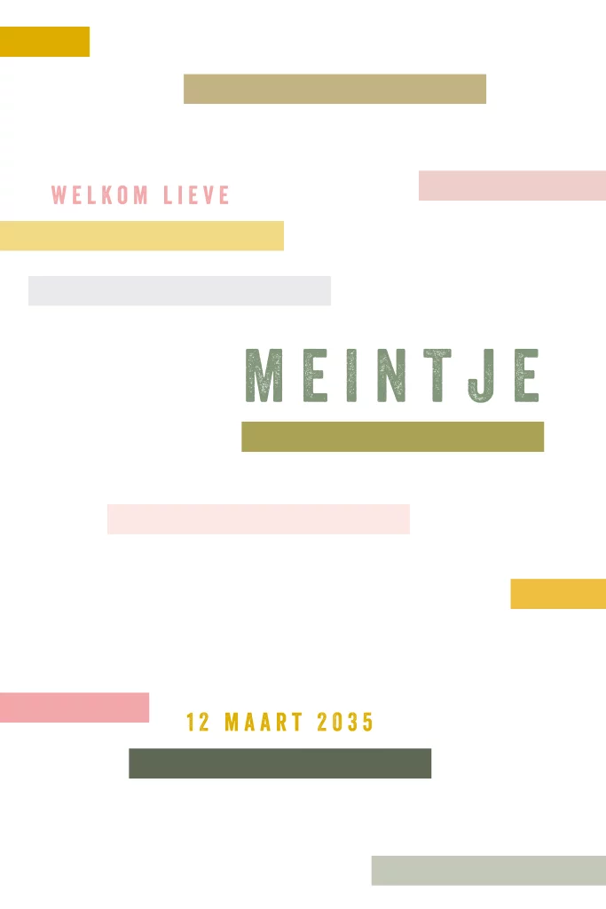 Modern geboortekaartje voor een meisje met gekleurde balken