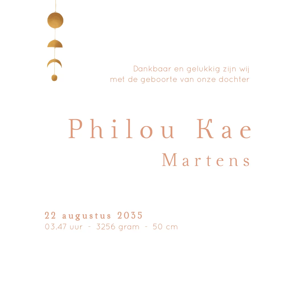 Lief vierkant geboortekaartje met een rotanwiegje en baby