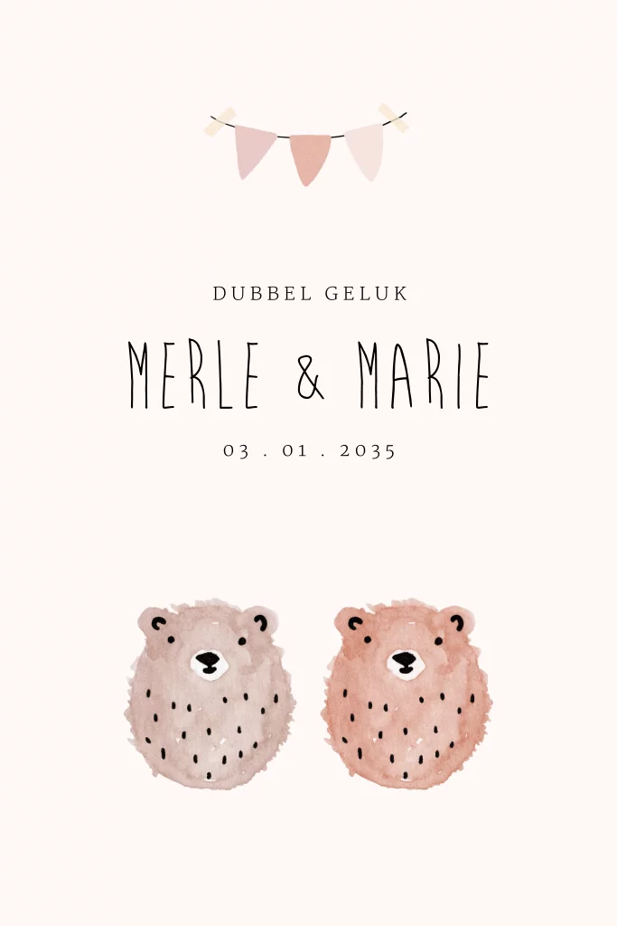 Vrolijk staand geboortekaartje voor een meisjes tweeling