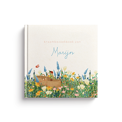 Kraambezoek invulboek met een bloemenveld