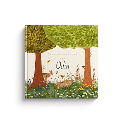 Kraambezoek invulboek met bomen, bloemen, dieren en een baby'tje