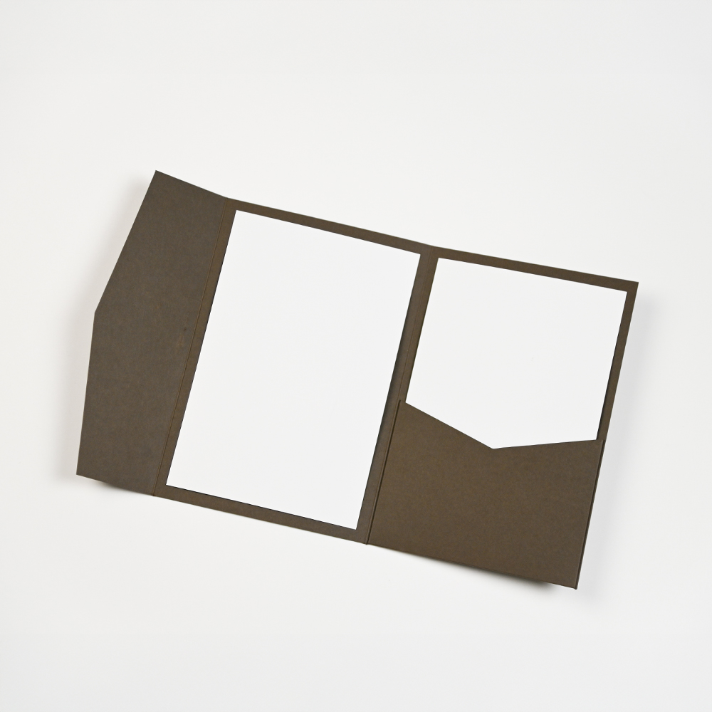Chocolate Brown pocketfold voor staande kaarten van 11x17 cm. Formaat pocketfold: 12,5x18,5 cm. Kies voor envelopmaat 13,5 x 20 cm.