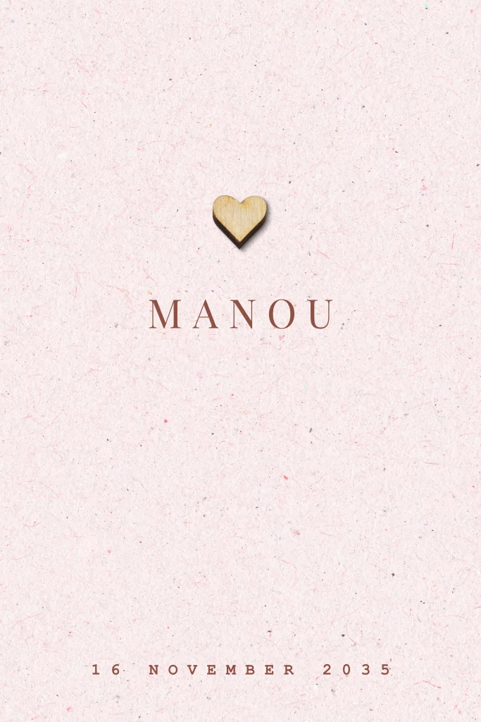 LET OP! Het houten hartje wordt NIET gedrukt, deze dien je los te bestellen tijdens het bestelproces.
